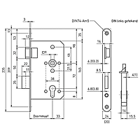 MAUER 4210 en 4206 Brandwerend cilinderslot doornmaat 65mm. Din links of rechts.Toepasbaar in deuren welke moeten voldoen aan EN1634