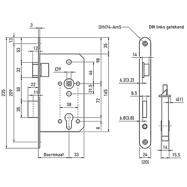 Functie buitenzijde: Deurkruk aan buitenzijde. Ook na sluiten van de deur is bediening van de dagschoot d.m.v. de deurkruk mogelijk. Voor afsluiten van de deur d.m.v. de nachtschoot is sleutelbediening noodzakelijk. Dit slot heeft geen wissel om de dagschoot middels sleutelbediening te openen.