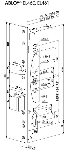 AssaAbloy EL460 Paniekdeurslot enkelzijdig krukgestuurd met PC-uitsparing. Solenoid zelfvergrendelend antipaniekslot EL460.