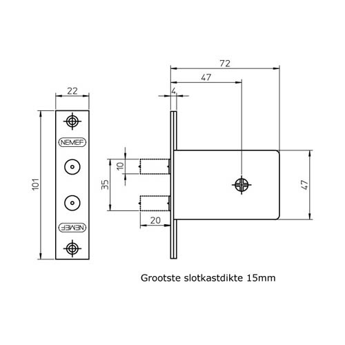 | Afmeting voorplaat 101 x 22 mm | |