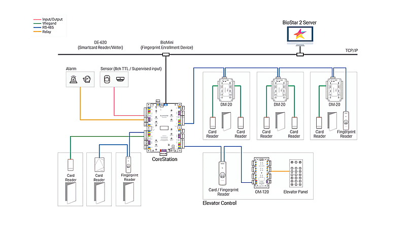 De Suprema CoreStation is een intelligente deurcontroller die de voordelen biedt van biometrische beveiliging ten opzichte van een gecentraliseerd toegangscontrolesysteem. Het CoreStation is ontworpen voor enterprise-level systemen en kan tot 500.000 gebruikers opslaan met een ongelooflijke snelheid voor het matchen van vingerafdrukken van maximaal 400.000 match/sec. Met zijn krachtige, biometrische gereedheid, Ethernet-communicatie, is CoreStation ook in staat om alle functies van het BioStar 2-platform aan te bieden.