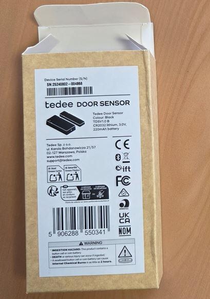 | Inhoud van de doos Tedee Door Sensor / Magneet / CR2032 lithium 3,0V, 220mAh batterij / Tool om batterijdeksel te openen / Activatiecodekaart / Minihandleiding / Gezondheids- en veiligheidsbrochure | |