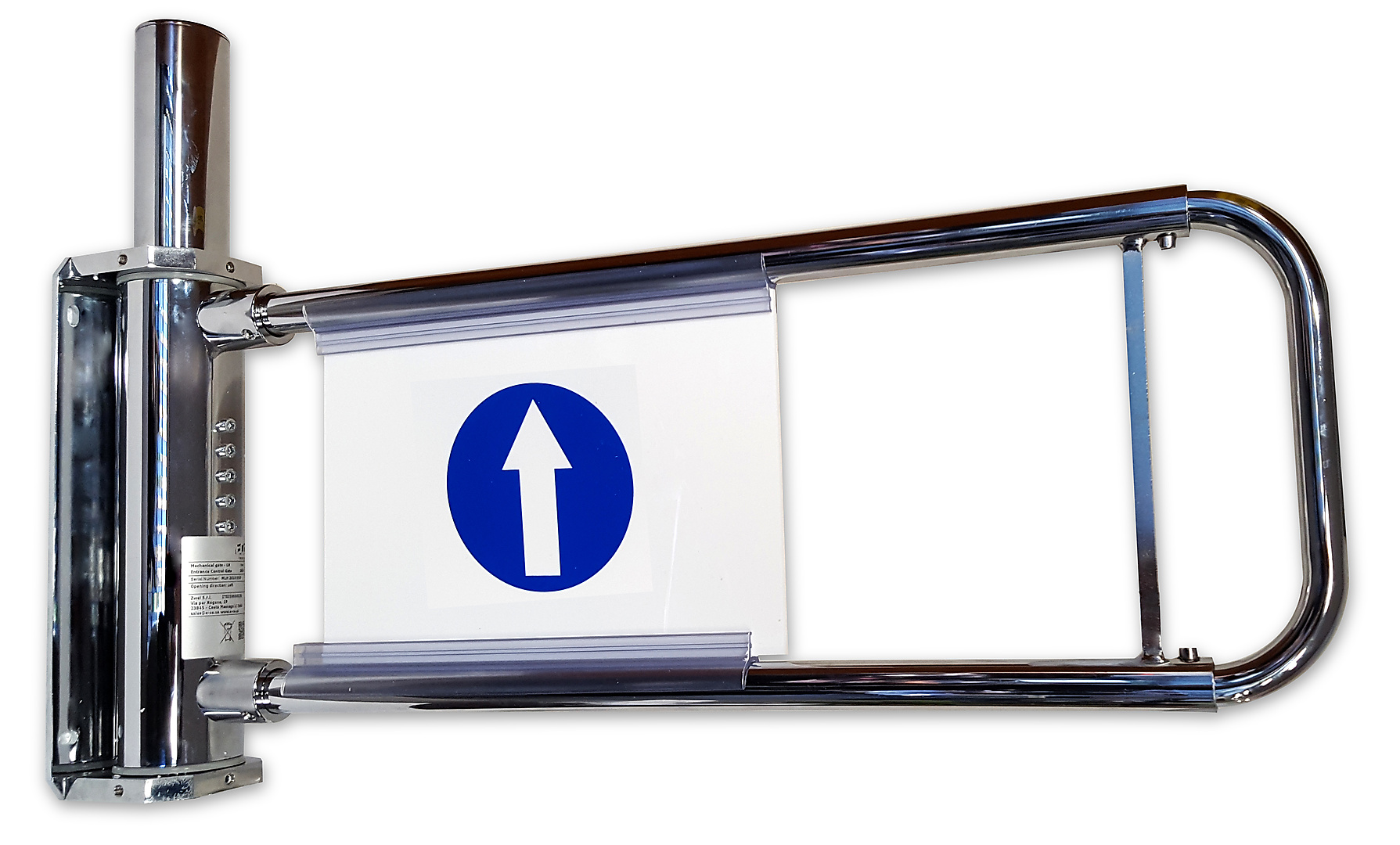 Deze mechanische winkelpoortje bevestigt u eenvoudig met bijgeleverde bouten aan de muur. Het toegangspoortje is zowel linksdraaiend als rechtsdraaiend verkrijgbaar.