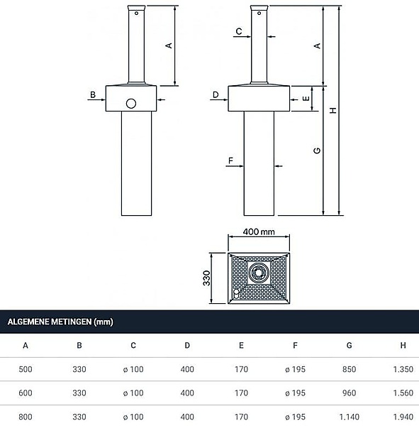 | Hoogte 500 600 of 800 | |
