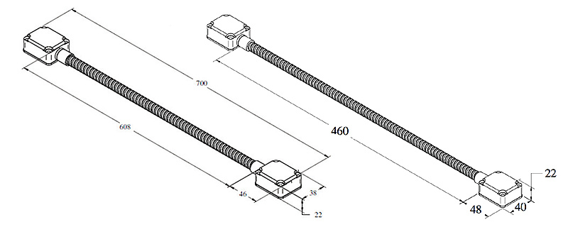 500 of 700mm lang bewapend met 7,1 mm I.D. flexibele stalen slang