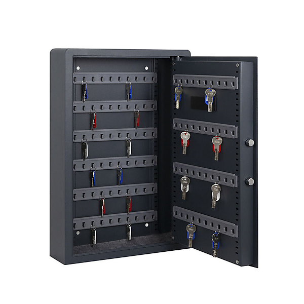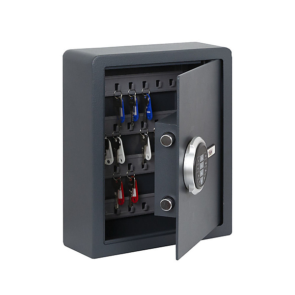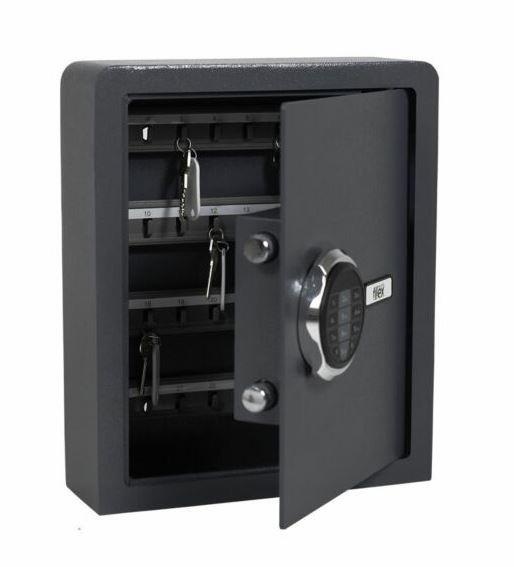 Filex KS Sleutelkluizen met elektronisch cijferslot Bescherming tegen inbraak. Uitgevoerd met elektronisch slot (inclusief batterijen en noodsleutels). In hoogte verstelbare hakenlijsten.