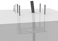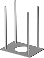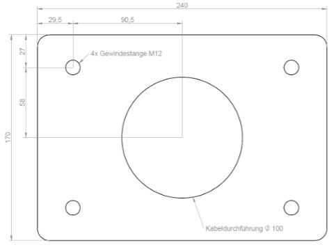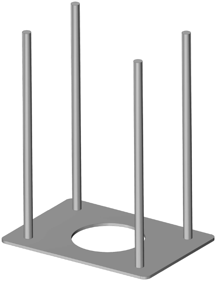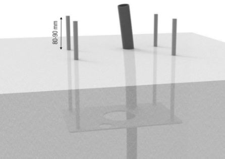 Kruse ankerplaat voor universele kolom. Montagehulp voor plaatsing in de fundering. Handige aanvulling voor bijzondere inbouwsituaties: grondplaat met draadstangen M12 (300 mm) voor inbeton