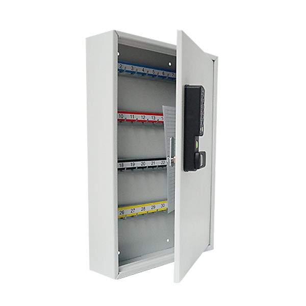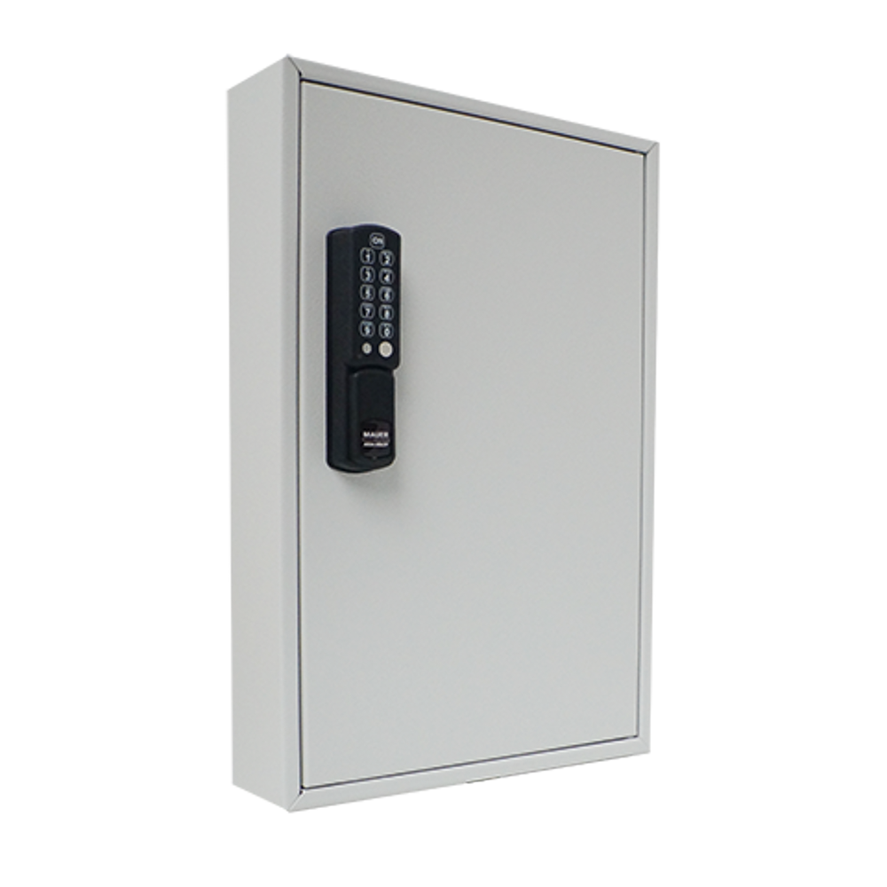 MAUER Sleutelkast met pincodeslot ESL-CAM met 64 HAKEN. Sleutelkluis bestaat uit 2mm dik plaatstaal voorzien van poedercoating RAL 7035 en is uitgevoerd met Mauer ESLcam lockerslot
