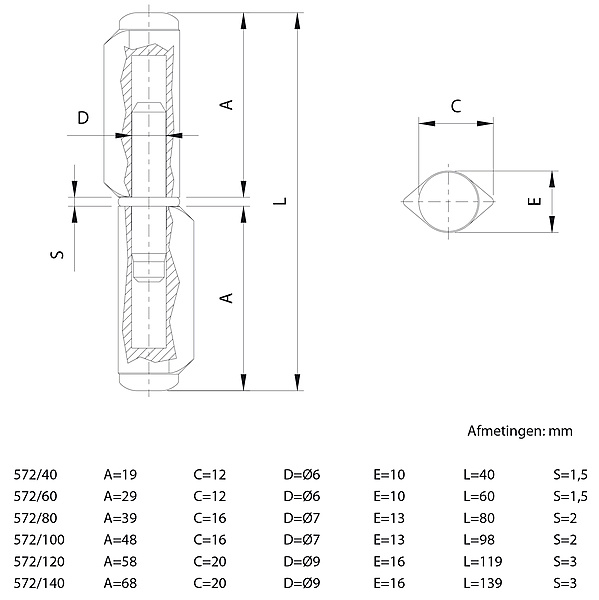 Laspaumelles met stalen stift goed te lassen. Laspaumelle als scharnier voor uw poort of deur. Verkrijgbaar in diverse diameters en lengtes.