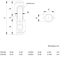 Laspaumelles groot met messing stift en ring in diverse maten.
