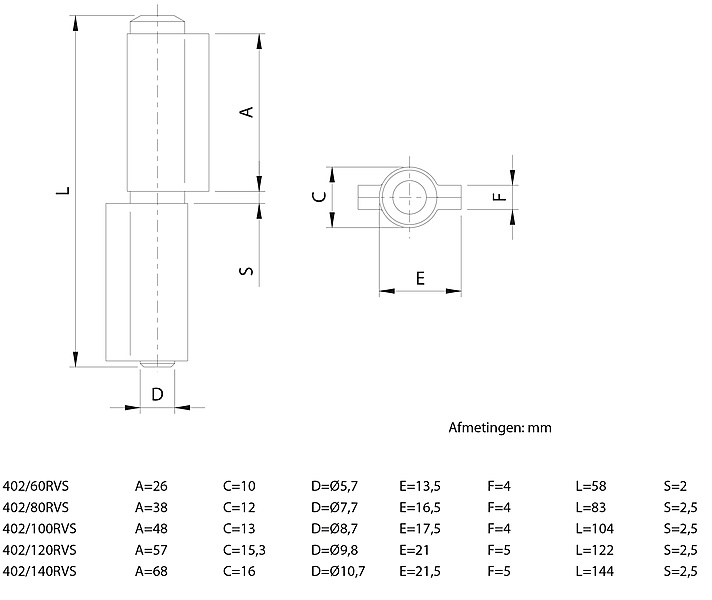 RVS laspaumelles geleverd met een losse pen. Verkrijgbaar in verschillende afmetingen.
