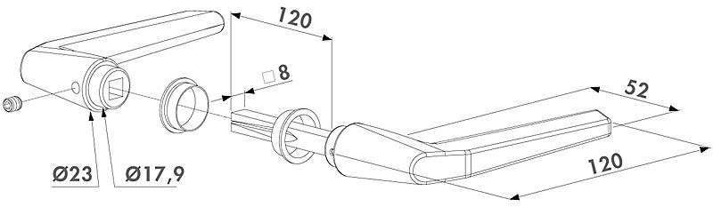 Krukpaar in aluminium met 120 mm krukstift voor gebruik met Hybrid insteeksloten.