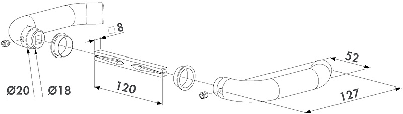 Krukpaar in aluminium met 120 mm krukstift voor gebruik met Hybrid insteeksloten.