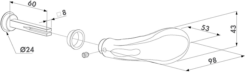 Locinox 3006C-2 Halve aluminium club-kruk 1 zijde blind en 1 zijde kruk. Halve poortklink van Locinox met aan 1 zijde afdekdop