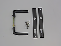 Deurkrukset met deurschild en deurkruk zwart gepoedercoat PC85mm. Recht schild 30x220x7mm inclusief schroeven