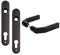 Zwarte polyamide klink met aluminium schild voor Locinox insteeksloten PC92. Klink in zwart polyamide met 66,5 mm krukstift voor gebruik met insteeksloten en afdekplaat voor krukgat en cilindergat.