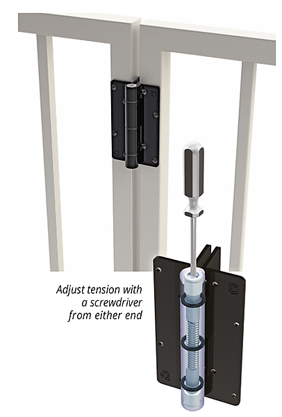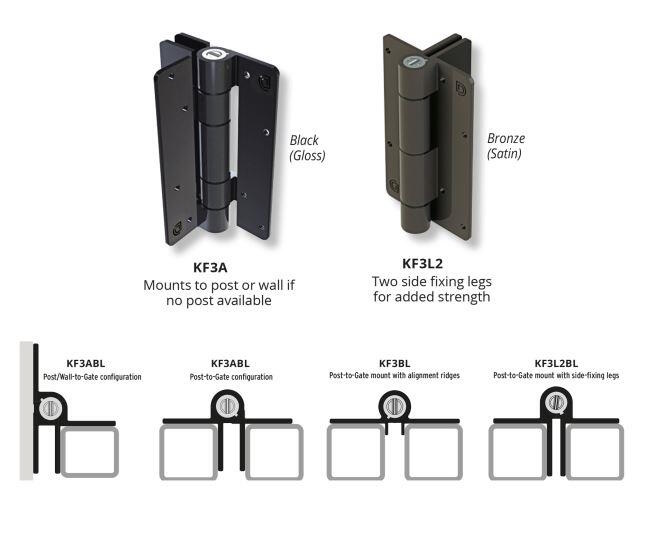 KwikFIT aluminium zelfsluitende veerscharnieren. Uitermate geschikt om uw poort met een zelfsluitend veerscharnier aan de muur te bevestigen of tussen 2 poortdelen. Geschikt voor zowel houten en metalen poorten. Veer is regelbaar in sluitsterkte.