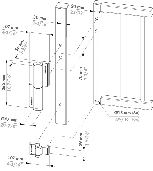 | Voor poorten tot max. 75kg en max. 1.1m breed | |