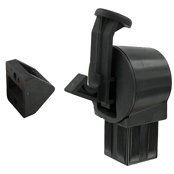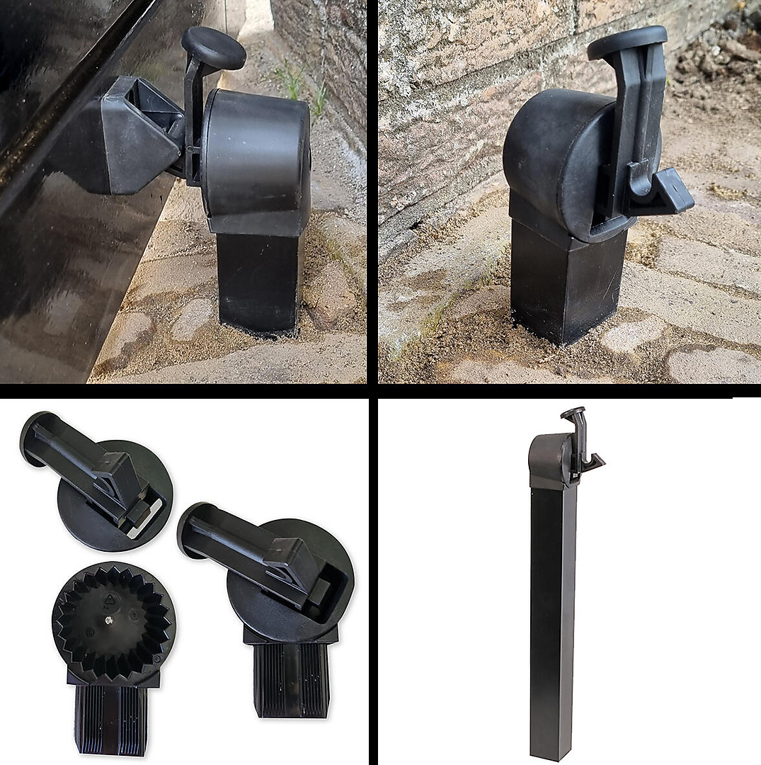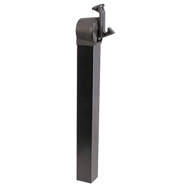 Deurvanger buitendeur met zwarte composiet stopper en zwart gelakt aluminium paal om in te storten. Ideale deurvastzetter of poortvanger indien er weinig ruimte is. Deze poortvastzetter word geleverd met vanghaak. Eenvoudig te monteren en makkelijk te bedienen met de voet om de deur weer los te laten. Ideale oplossing en deurvastzetter voor buiten. Geleverd inclusief aluminium paal 36cm lengte