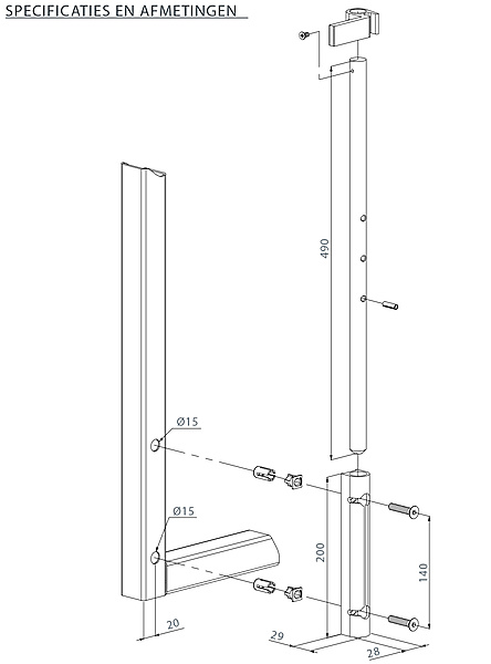 | Voor vierkante profielen van 40 x 40 mm of meer | |