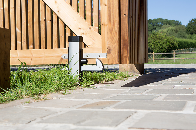 | Stootrubber en vanghaak in kunststof vermijden krassen op de poort | |