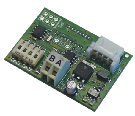 Uitbreidingskaart van BFT. De Uni-blue EA485 is een uitbreidingskaart voor aansluiting van groepen centrales met beheer van de seriële commando's.