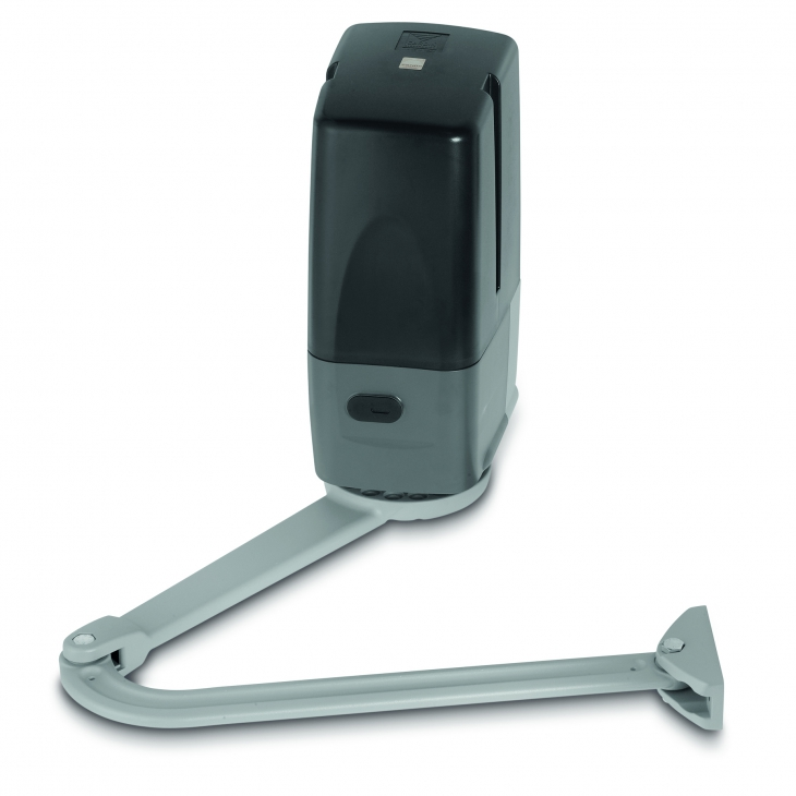 Deze aandrijving is uitermate geschikt voor poorten met grote palen met scharnieren aan de binnenzijde ten opzichte van de palen. Ook geschikt voor poorten met vleugels met max. breedte van 3,5m (max. 5m bij het model met knikarm en elektrisch slot) en max. gewicht van 400kg. De handmatige ontgrendeling vindt plaats door het sleutelklepje te verwijderen met de meegeleverde inbussleutel. Aandrijfarm apart te bestellen.