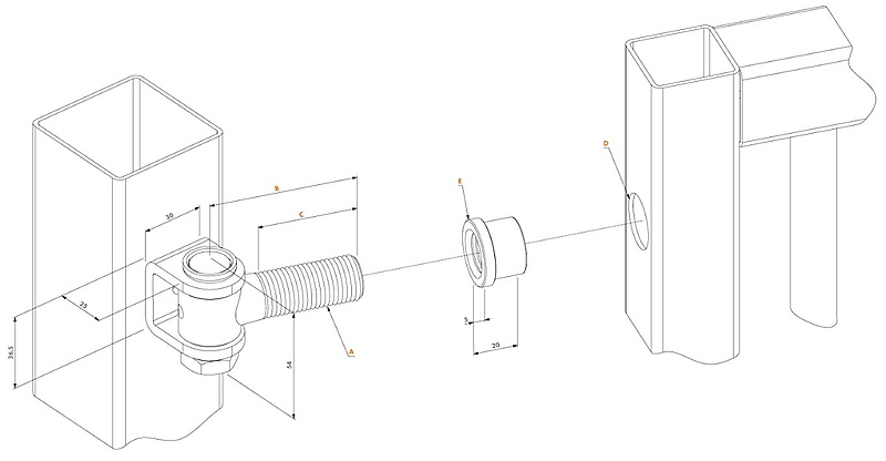 G90Z-B-M20-67 : 90° scharnier met lasmoer, Oogbout M20 x 67 mm