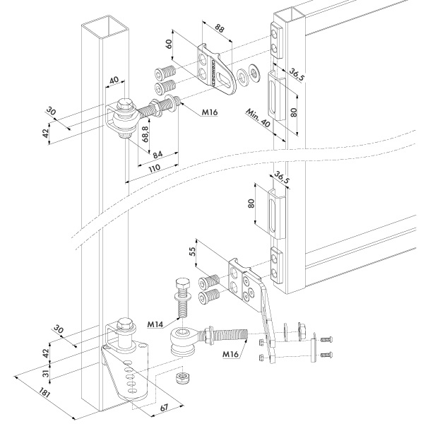 Locinox EXCENTRO 180° scharnier is de perfecte oplossing voor poorten die op een schuine helling geplaatst zijn. Excentro opent in een opwaartse beweging, waardoor een perfecte in- en uitgang mogelijk is, zelfs op de steilste hellingen (van 2% tot en met 35%). Modulair voor poorten met een Locinox GBMU4D-M16 scharnier.