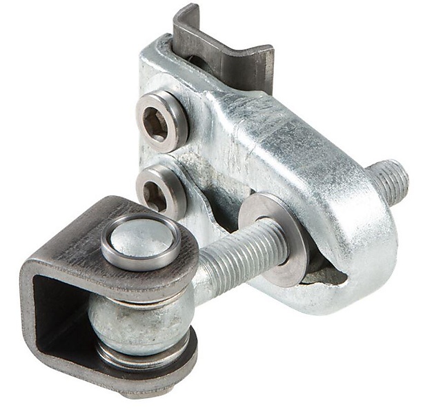 Locinox GBMU4DSHIELD vandalismebestendig scharnier 4-dimensioneel - U-lasoor en poortklauw in bruut staal of verzinkt met M12 of m16 Oogbout 90 mm Vandalisme-bestendig, warmbad gegalvaniseerd 180 graden scharnier. Deze beveiligde versie van het GBMU4D16 scharnier zorgt voor een extra beveiliging vermits oog- of dwarsbouten niet losgedraaid kunnen worden. Ook hier hoeft u geen links-/rechtsdraaiende poorten meer te stockeren. Hoogte en diepte, links/rechts draairichting zijn individueel instelbaar. Dit product met artikelnummer P00013377 was vroeger bekend onder het artikelnummer GBMU4DSHIELD