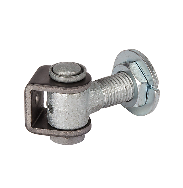 Warmbad gegalvaniseerd 90° scharnier met anti-vandalisme beveiliging. Het scharnier is de perfecte keuze voor al uw kleine en middelgrote industriële poorten. De bijgeleverde regelmoer zorgt voor een perfecte afregeling van het scharnier.
