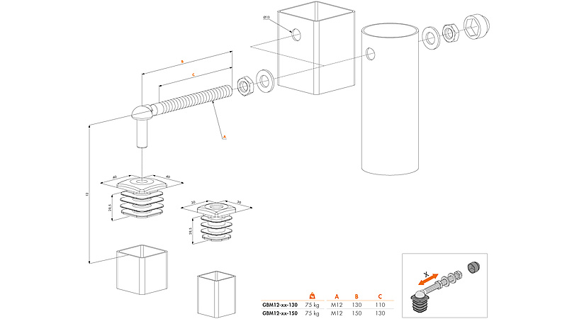| Verkrijgbaar met kunststof dop 40x40 mm | |