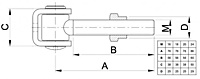 120-12: Scharnier M12 met beugel en inlasmoer