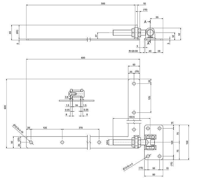 Verstelbaar poortscharnier 600 mm haaks SP-130M24-D