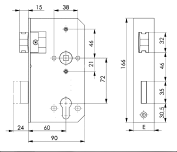 AMF RVS poortslot 142UNIG en 140UNIG poortsloten met of zonder slotkast en RVS voorplaat met elektrolytisch verzinkt slotkast