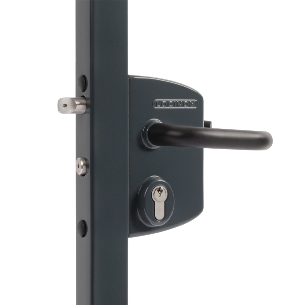 Dankzij de 20 mm continue regelbaarheid van beide pennen regelt u elke poort haarfijn af voor een optimale vergrendeling. Een massieve roestvrijstalen dieptevergendeling van 23 mm zorgt voor een veilige sluiting.