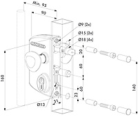 | Continue verstelbaarheid tot 20 mm van beide pennen zonder demontage van de slotkast | |
