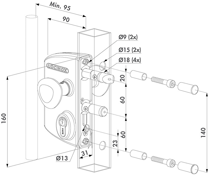 Locinox Elektrisch slot met gesloten of open werking. Elektrisch slot met aluminium behuizing en roestvrijstalen binnenwerk. Dit slot blokkeert de krukken onder/zonder spanning. Dankzij de 20 mm continue regelbaarheid van beide pennen, kan u elke poort haarfijn afregelen om een optimale vergrendeling te garanderen. Een massieve, roestvrijstalen nachtpen met 23 mm dieptevergrendeling garandeert een veilige sluiting.