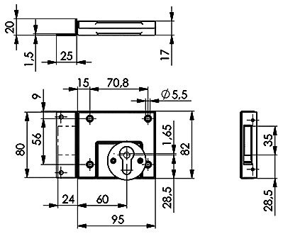 AMF Slot met hoeksluitplaat 11353. geschikt voor profiel cilinder. Opbouw poortslot geleverd exclusief cilinder