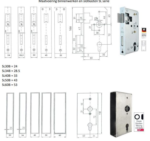 Bever insteekslot voorplaat 33mmDit losse verzinkte binnenwerk voor de slotkast SL40 past in de slotkast van zowel Bever en Klophaus als in de slotkast voor poortslot van AMF. De maatvoering in vermeld in de pdf onder het artikel.