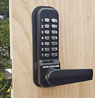BL4401 Poortslot met code en deurkruk. Dit codeslot voor houten poorten van Borglocks word geleverd met een 60mm dagpen. Aan de binnenzijde is het slot voorzien van een vastzetpal. Code porotslot geschikt voor buiten toepassingen.
