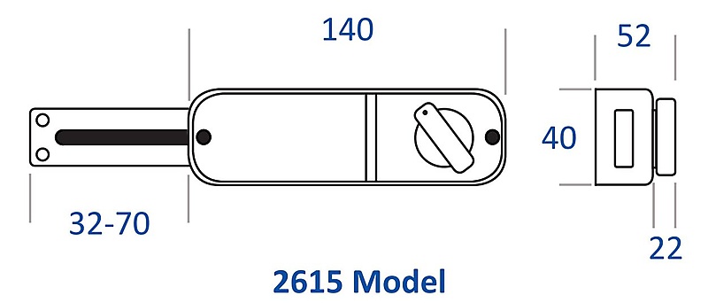 Deze vergrendeling is ontworpen voor toepassingen die te smal zijn om een normale insteeksloten te kunnen plaatsen. Als gevolg hiervan wordt de BL2615 geleverd met een op de velg gemonteerde draaiknop ter vervanging van de binnenhandgreep.
