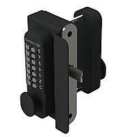 Gatemaster codeslot BDG. Enkelzijdig of dubbelzijdig digitaal poortslot in opbouw met aan de ene kant een toetsenbord en aan de andere kant een kruk of aan beide zijden een toetsenbord. Een eenvoudige en veilige oplossing voor toegangscontrole op uw houten poort.