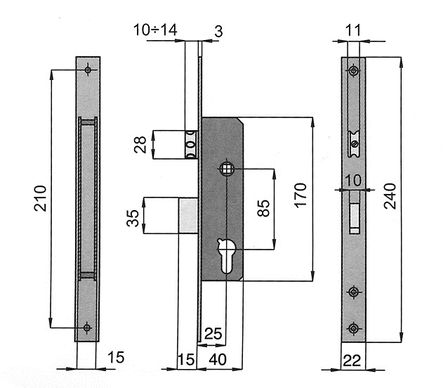 Verzinkt inbouwslot met INOX frontplaat