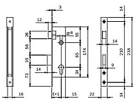 Insteekslot PC85 doornmaat 20mm verzinkt met RVS voorplaat voor tuindeuren, binnendeuren en poorten.
