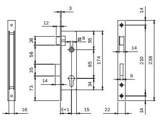 | Voorplaat | rvs 238 x 22 x 3 mm |