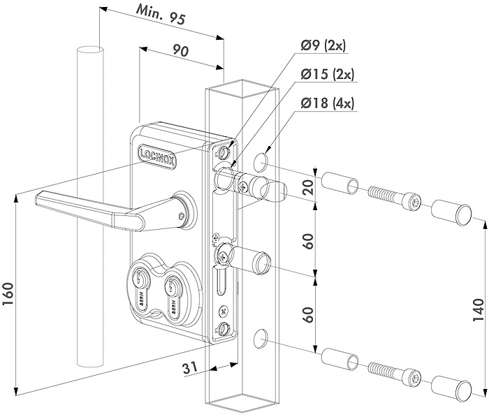 | Uitwisselbaar met alle locinox draaipoortsloten |