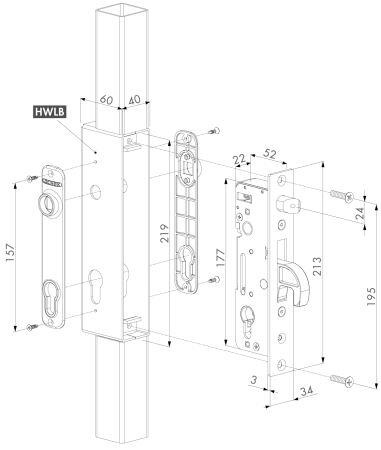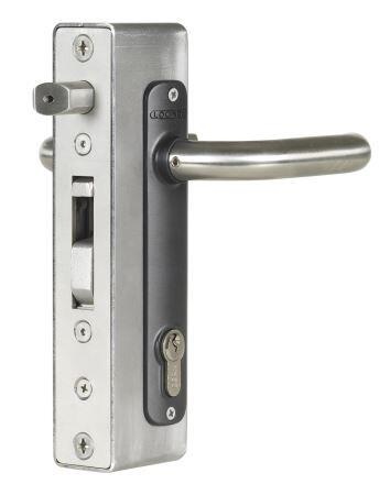 Hoogwaardig insteekslot met 100% roestvrijstalen mechanisme te gebruiken in combinatie met de inlaskast. De massieve roestvrijstalen valhaak en regelbare dagpen maken dit slot uniek in zijn soort. De valhaak in combinatie met bijhorende aanslag verhinderen het uit elkaar trekken van de poort. Het slot kan toegepast worden op metalen poorten met de inlaskast.