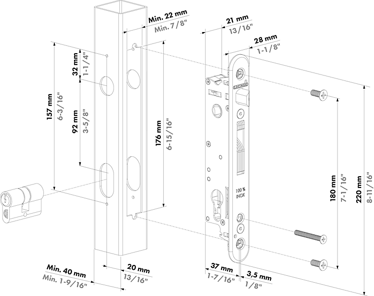 LOCINOX INSTEEKSLOT FORTYLOCK - 20 MM DOORNMAAT, PROFIELEN VANAF 40 MM
