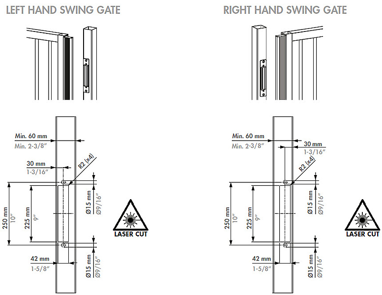 Aanpasbaar, poedergelakt aluminium designprofiel voor een esthetische afsluiting van draaipoorten.